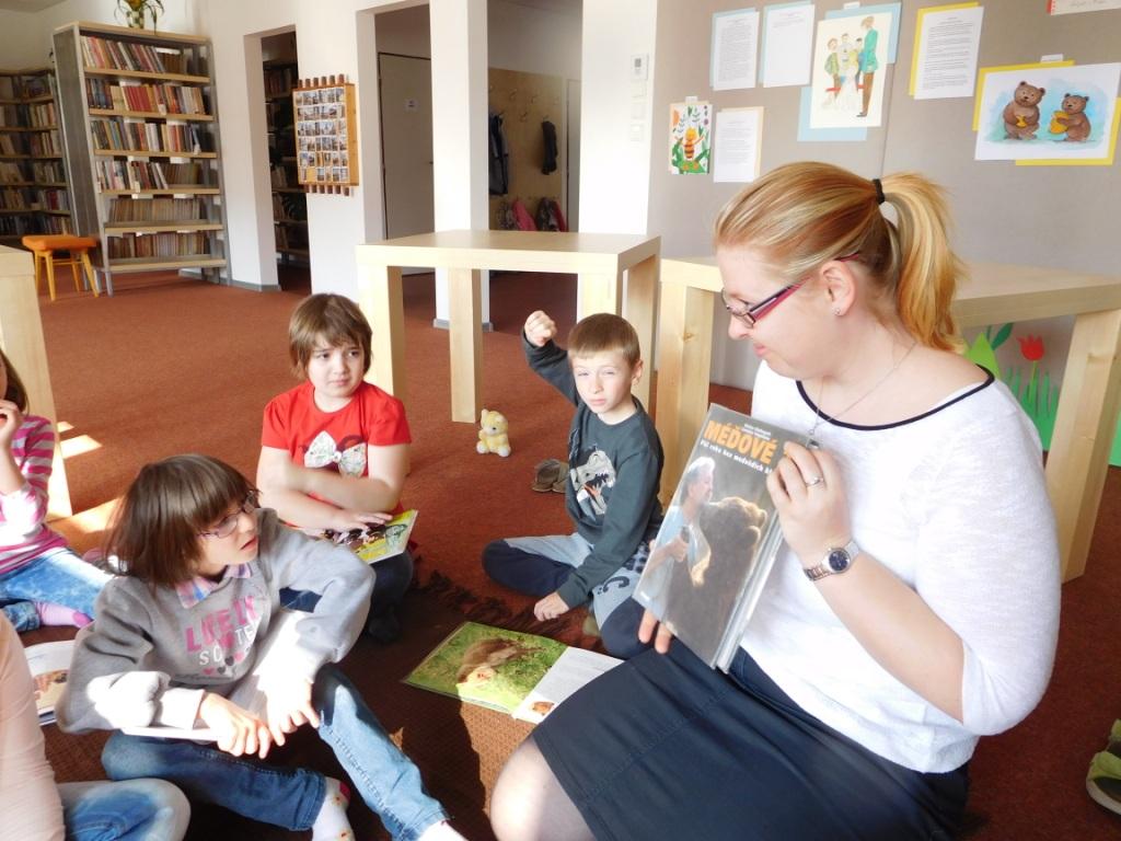 19. dubna 2016 navštívili prvňáčci v rámci projektu „Knížka pro prvňáčka“ Pravdovu knihovnu. Společně si s paní knihovnicí Milenou Kodýmovou a s paní učitelkou Katkou Vlkovou prohlédli knížky o medvědech. Každý žák přečetl kousek textu, povyprávěli si, jaké je to býti medvědem. Nakonec se všichni snažili i o medvědí chůzi… 🙂