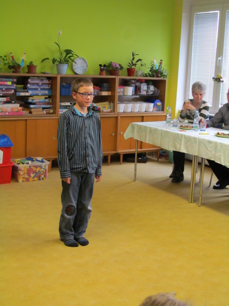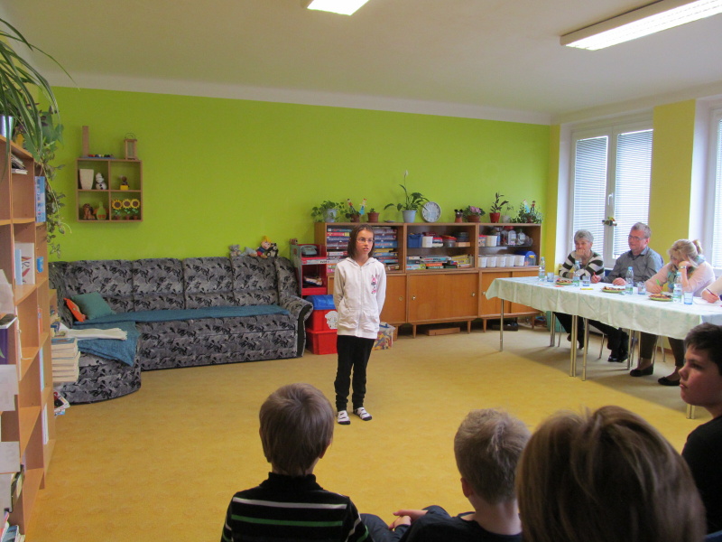 Již tradičně se před Velikonocemi sjely malotřídní školy z okolí k nám do Jarošova na recitační soutěž Jarošovské vajíčko. Děti soutěžily ve třech kategoriích. Prvňáčci samostatně, druhá a třetí třída společně. Třetí kategorií byli žáci čtvrtého a pátého ročníku. Na celé soutěžní klání dohlížela milá a spravedlivá porota, které jsme díky podařeným výkonům jejich funkci nikdo nezáviděl. Vítěze si prohlédněte na fotografiích. Snad jen dodám, že obdiv zaslouží každý recitátor, a tak malá odměna nikoho neminula. Tímto děkujeme za výborné mazance našim šikovným kuchařkám :-)) A těšíme se na další setkání s našimi kamarády ze škol v Popelíně, Starém Městě, nebo Velké Lhoty.