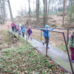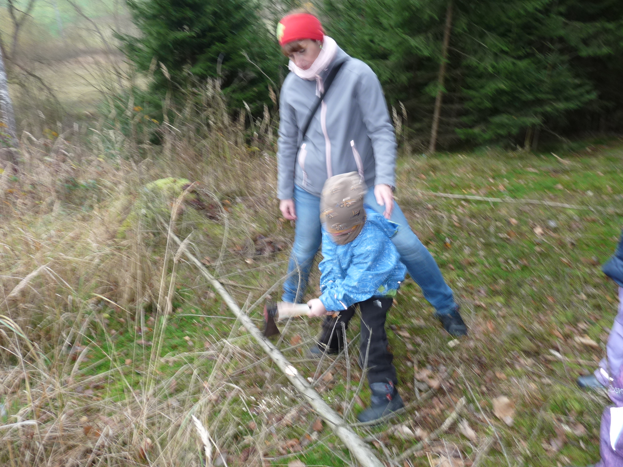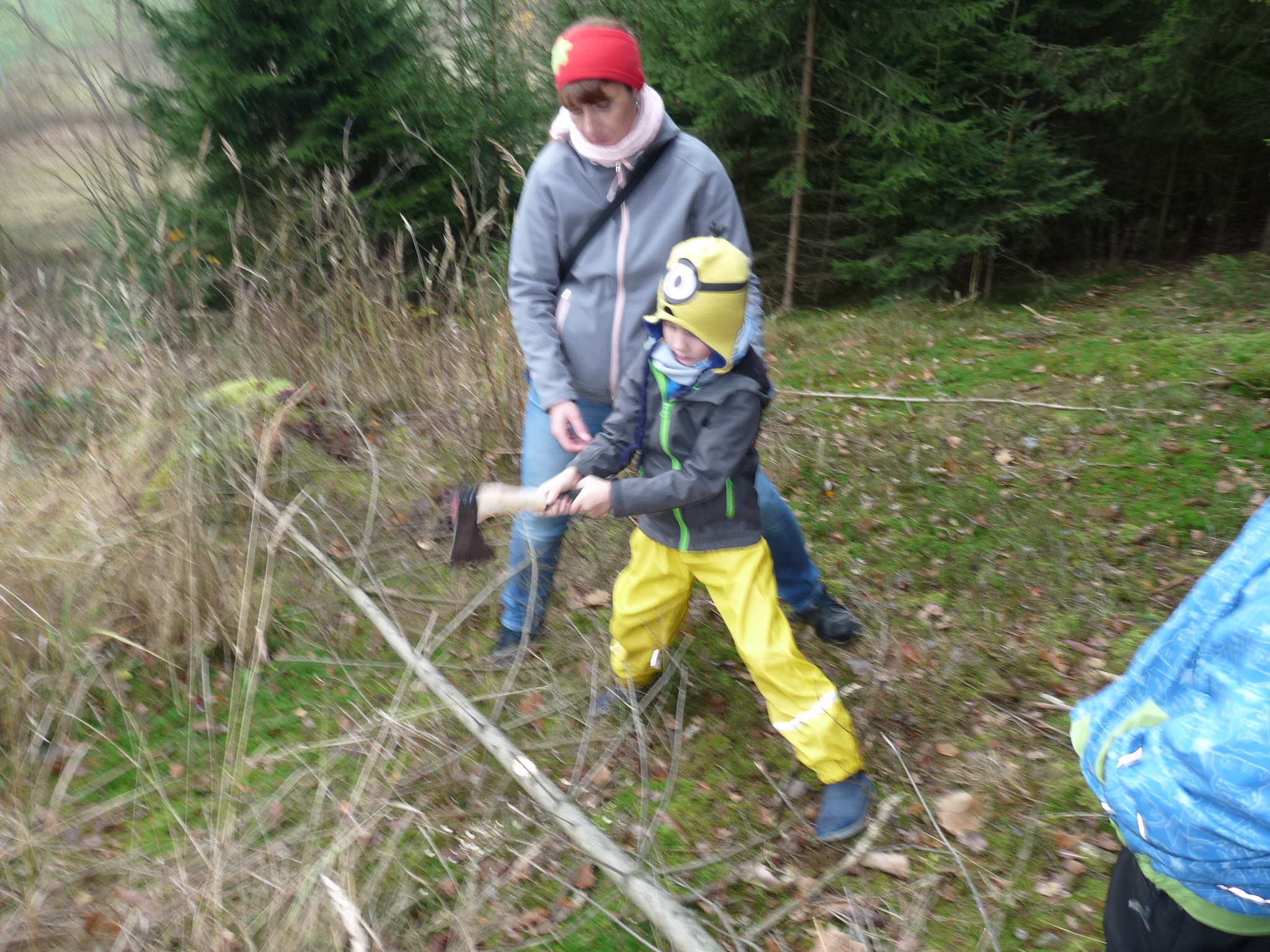 Tento a příští týden se ve školce věnujeme řemeslům. Proto jsme využili lesní den k tomu, abychom si přiblížili zaměstnání, která se k lesu bezprostředně vztahují. Připomněli jsme si hned 2. Myslivce a dřevorubce. Procházeli jsme se podzimní krajinou, která je bezpečně připravena na příchod zimy. Dokládá to spadané listí, jehož rozhazování nám působilo nemalé potěšení. Cesta těžkým terénem mezi lesním porostem nám připomněla, kudy prochází myslivec se svým věrným psem. Naší pozornosti neušel břečťan, který se plazil po kmeni stromu do neuvěřitelné výšky. Hned jsme ho bedlivě prozkoumali, a zjistili, jak je to vůbec možné. Posilněni ňamkou jsme se chopili sekery, abychom si vyzkoušeli, jak je namáhavé přetnout třeba stromek. A pak už jsme unavení, ale spokojení spěchali zpátky do školky.