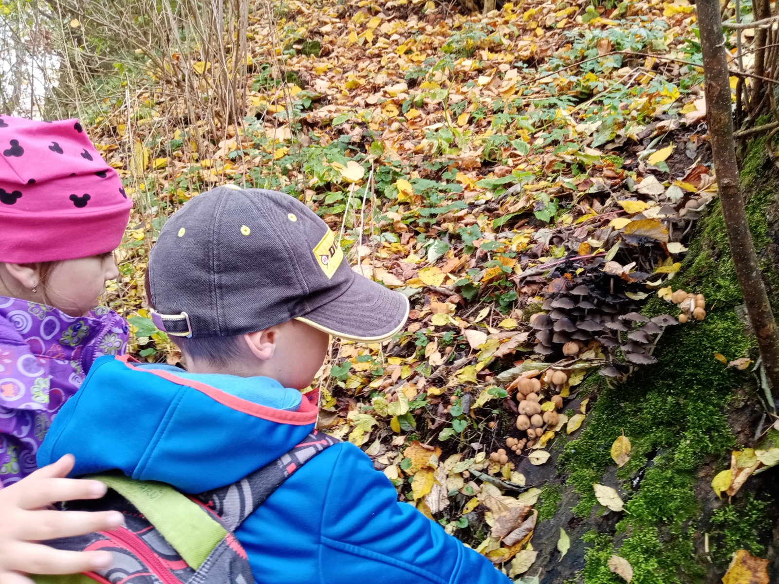 Dnešní ráno nás přivítalo typickým podzimním počasím. Žádné velké teplo, vlhko a všudypřítomná mlha. Ven nás to sice moc netáhlo, ale naložili jsme batůžky na záda a vyrazili. Vydali jsme se do údolí ke střelnici. Abychom se vyhnuli přechodu přes frekventovanou silnici, zvolili jsme cestičku podél řeky. Náramně jsme si užívali akustiku pod mostem, bahýnko, trávu a vše, co nám přišlo cestou do ruky. Na střelnici jsme se posilnili a zahráli „poznávačku“ kamaráda. Ještě jsme si trošku pohráli a už byl čas se pomalu vrátit. Cestou nás zaujaly houby, které byly i naším týdenním tématem. Všímali jsme si jejich stavby, zabarvení, vůně a míst, kde všude rostou. I nevlídně vypadající den může být příjemný.