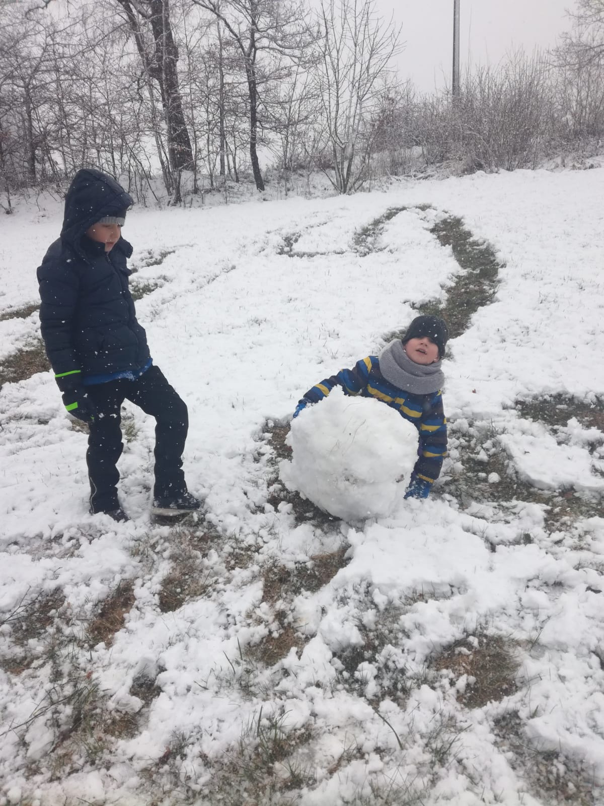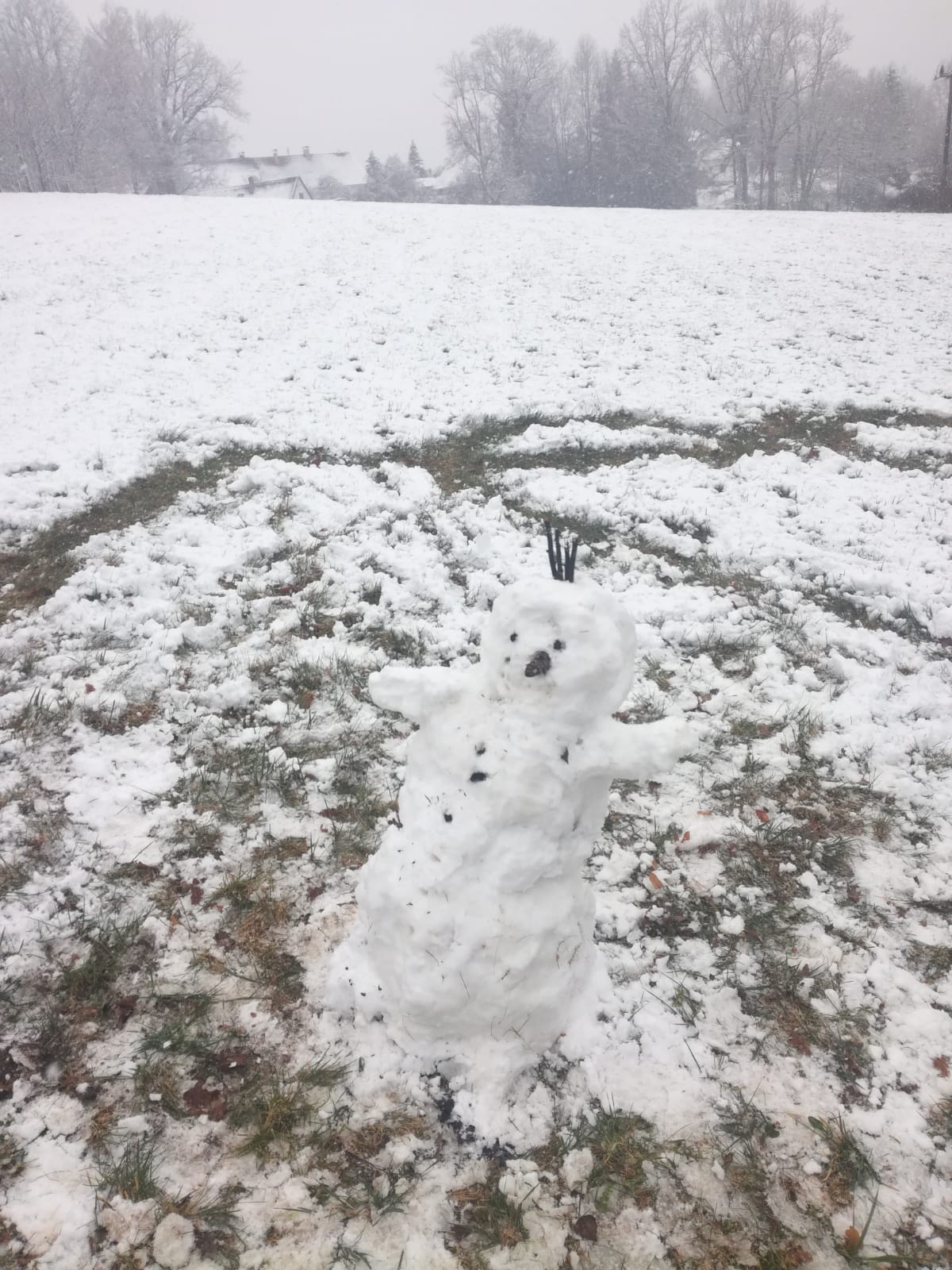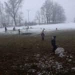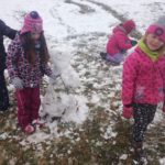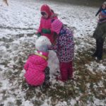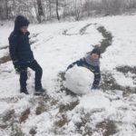 Člověk by neřekl, že tento lesní den se uskutečnil v dubnu, sníh, sněhulák, koulovačka…