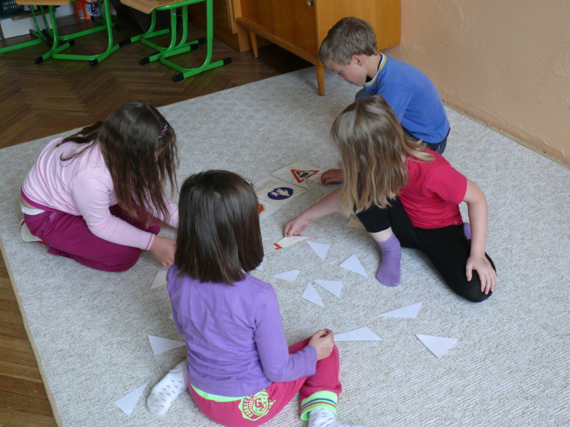 – Znalost a procvičení dopravních značek, menší děti skládaly dopravní puzzle