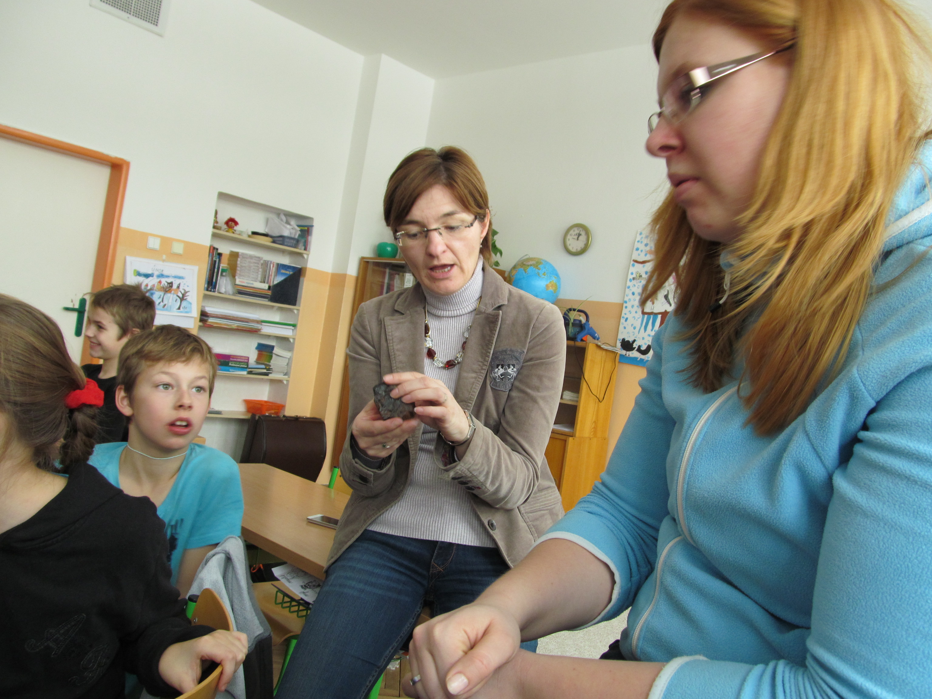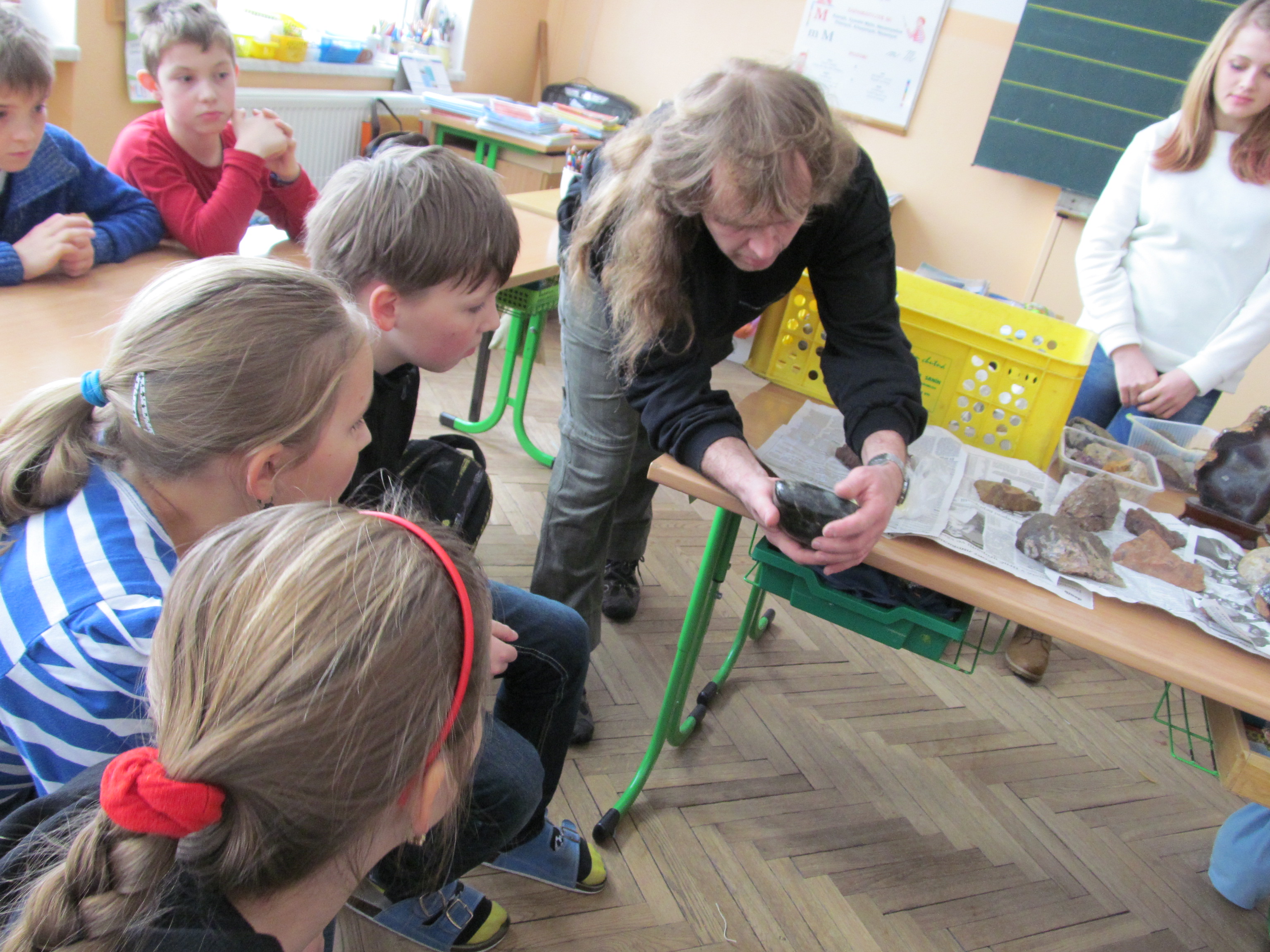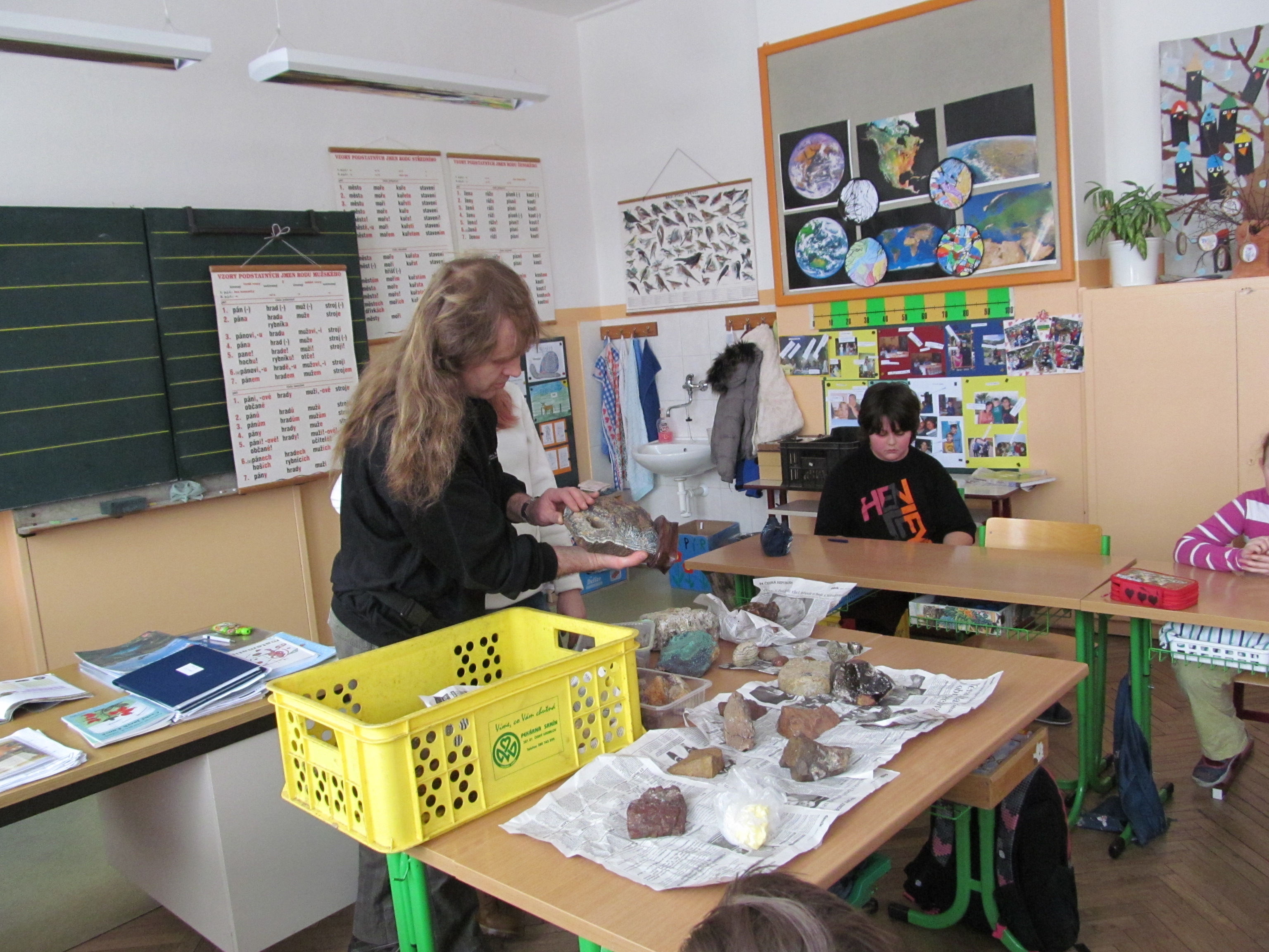 Pozvání do školy na hodinu přírodovědy přijal vášnivý sběratel hornin a minerálů pan Jiří Koudelka z Bednárce. Ukázal dětem některé exempláře ze svých sbírek a poutavě vyprávěl o tom, jak a kde které minerály získal. Žáci měli možnost si všechny nerosty prohlédnout na vlastní oči a také je vzít do ruky. Dozvěděli se o vlastnostech těchto nerostů. Asistentkou pana Koudelky byla jeho dcera Martinka Koudelková. Oběma patří náš velký dík!
