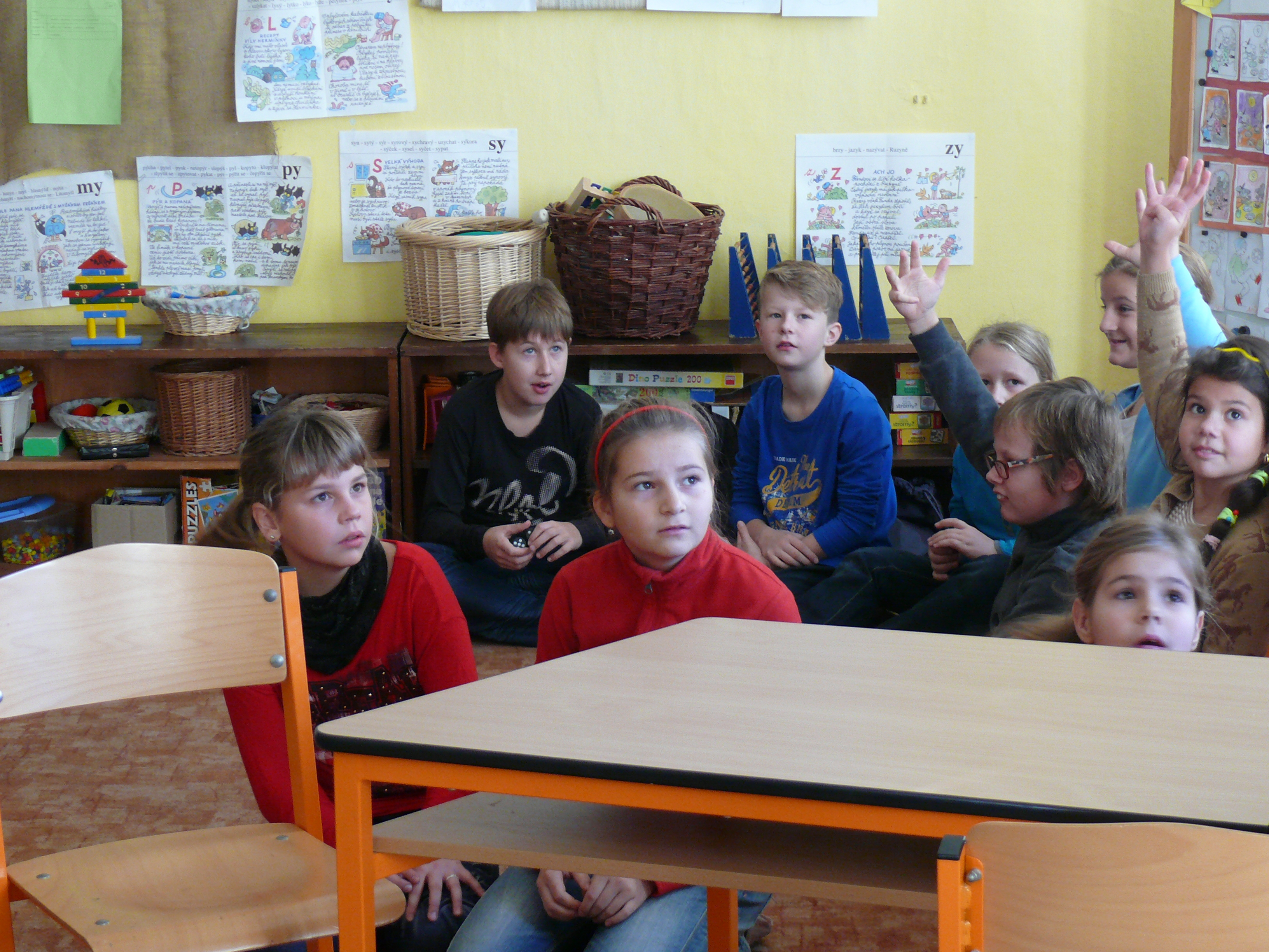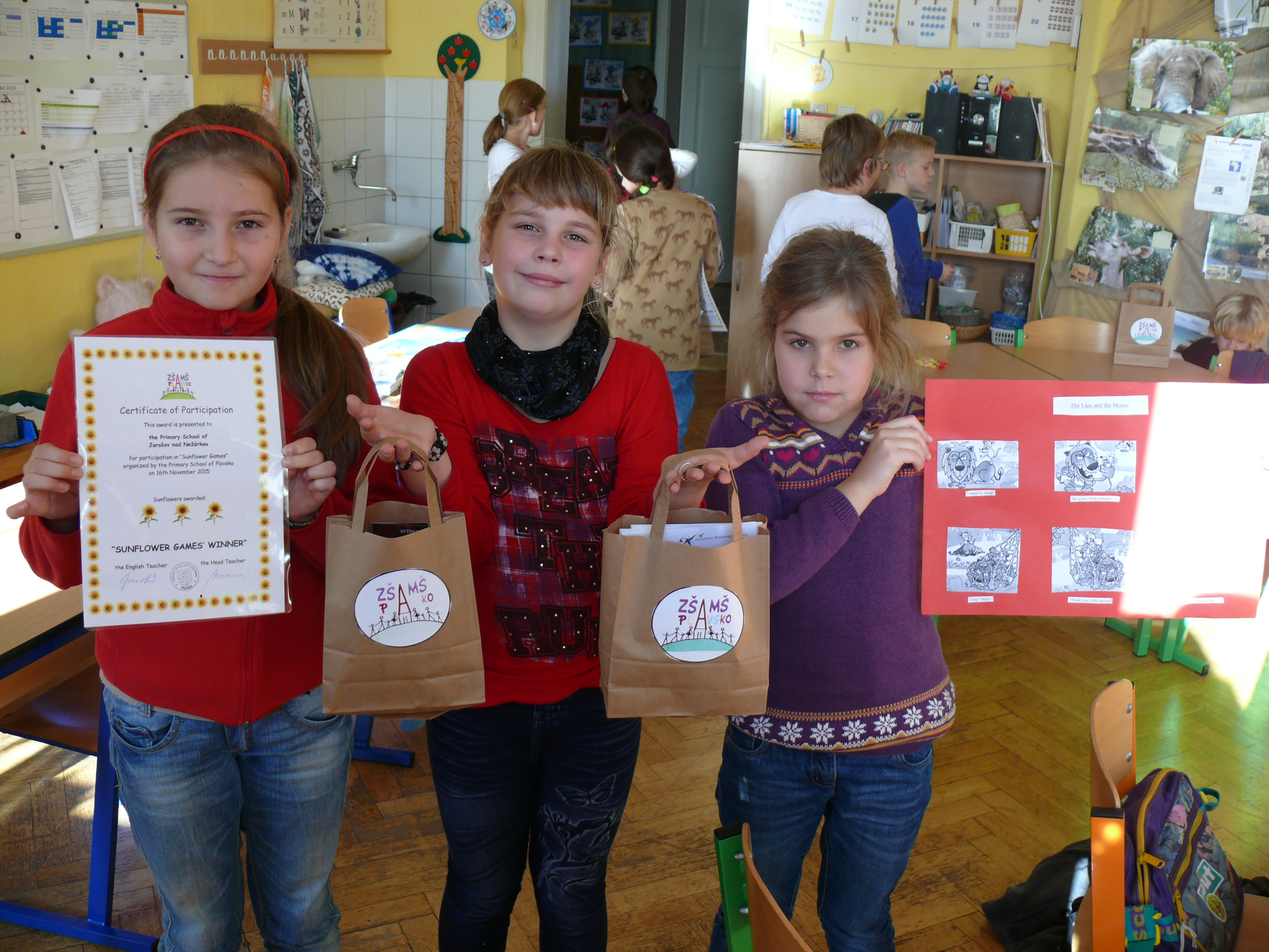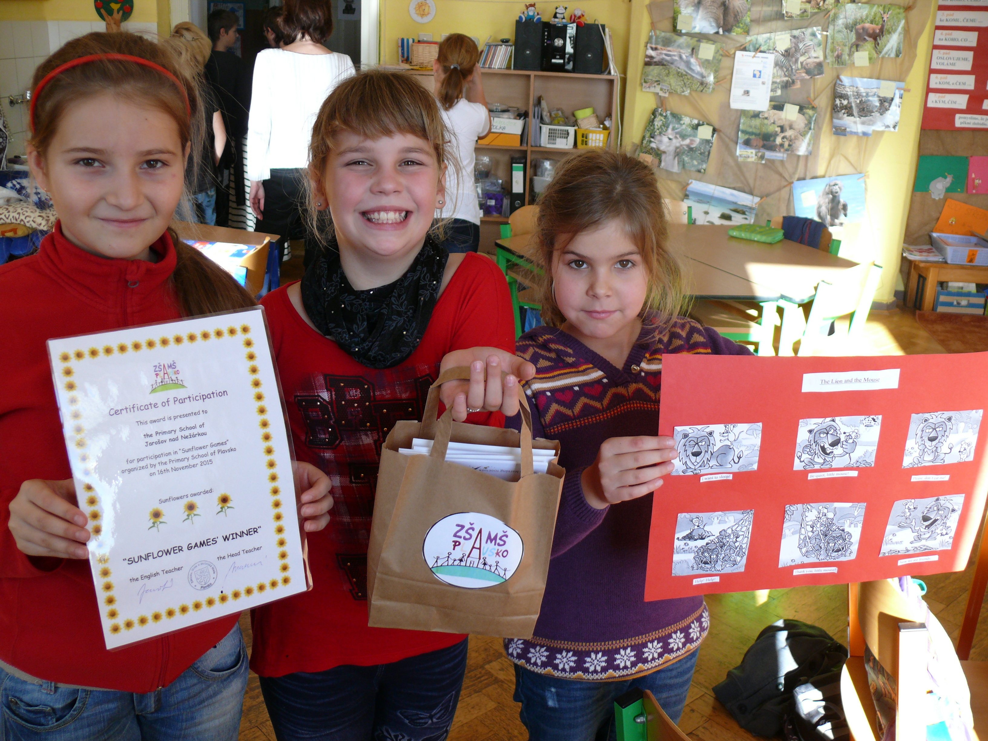 Soutěž malotřídek v angličtině proběhla 16. listopadu v ZŠ Plavsko. Soutěže se zúčastnily ZŠ Plavsko, ZŠ Popelín, ZŠ Staré Město pod Landštejnem a naše škola, která vsadila na děvčata, a soutěžit do Plavska se vydaly Kačka Kümmelová za 3. ročník, Iva Neumannová za 4. ročník a Lucka Hemberová za 5. ročník. Holky nejprve bojovaly se svými vrstevníky jako jednotlivci ve třech disciplínách – mluvení, čtení a psaní a poslech. Následovala soutěž týmů, ve které bylo úkolem soutěžících prezentovat bajku The Lion and The Mouse v jednom obrázkovém příběhu. S tímto úkolem si nejlépe poradila naše děvčata, která při jeho zpracování ukázkově spolupracovala a zaslouženě vybojovala první místo. Kačce, Ivě a Lucce gratulujeme a ZŠ Plavsko děkujeme za perfektní organizaci a příjemně prožité dopoledne s angličtinou.